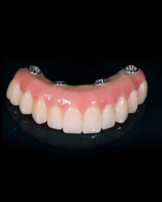 Tratamentul realizat: inserarea a câte 4 implanturi dentare pe fiecare arcadă, utilizând sistemul premium Straumann BLX, conceput pentru stabilitate primară ridicată și integrare rapidă. Implanturile au fost plasate conform conceptului Straumann ProArch, o tehnologie dedicată reabilitărilor totale pe implanturi, recunoscută pentru predictibilitate și rezultate pe termen lung.