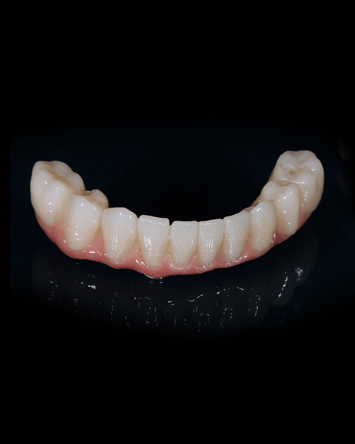 Lucrarea finală: restaurare fixă full zirconiu, aleasă pentru rezistența superioară, estetică naturală și durabilitate. Zirconiul permite obținerea unui zâmbet armonios, cu funcție masticatorie corectă și stabilitate în timp.